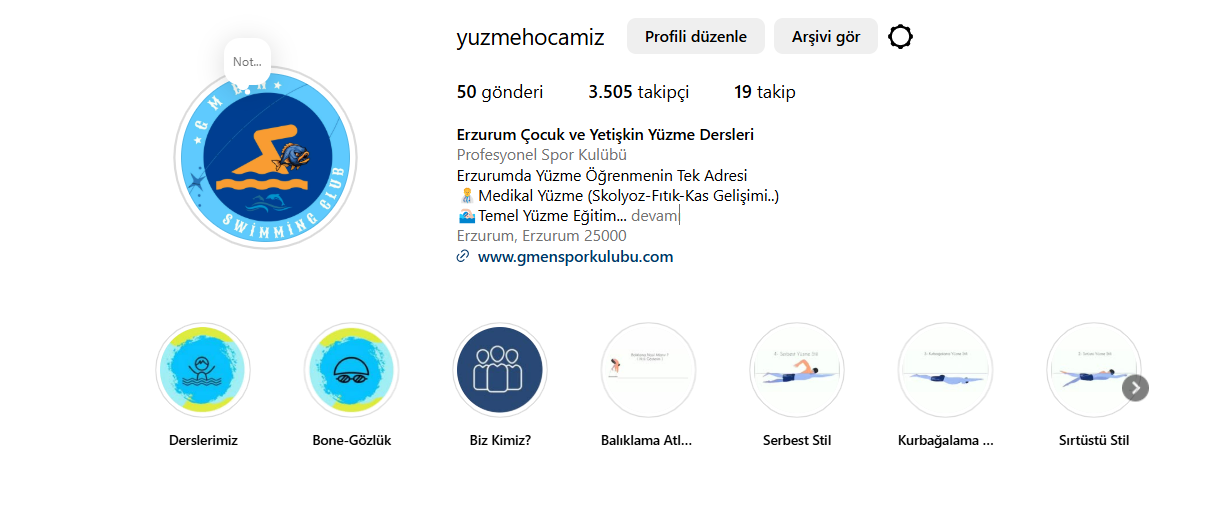 Erzurum Gmen Yüzme Kursu İnstagram Sayfamız